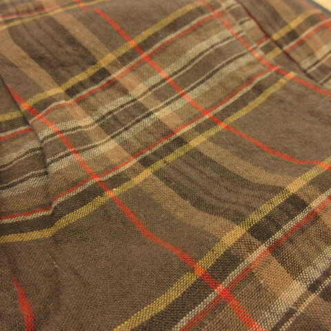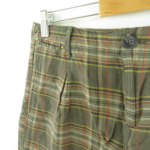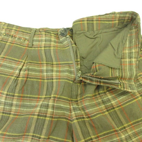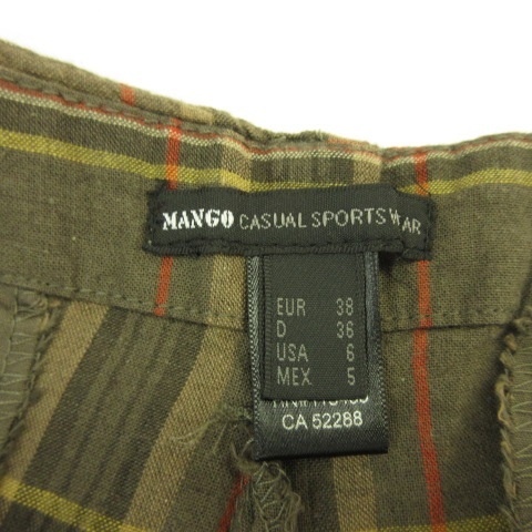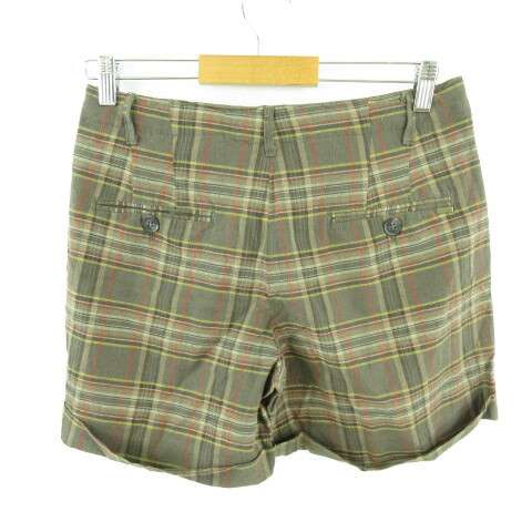 マンゴ MANGO ショートパンツ チェック リネン混 茶 赤 38 *T652 レディース