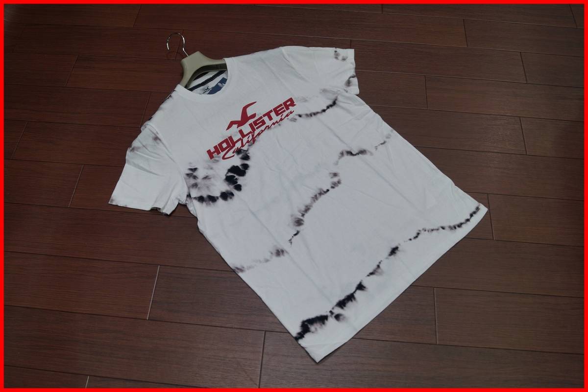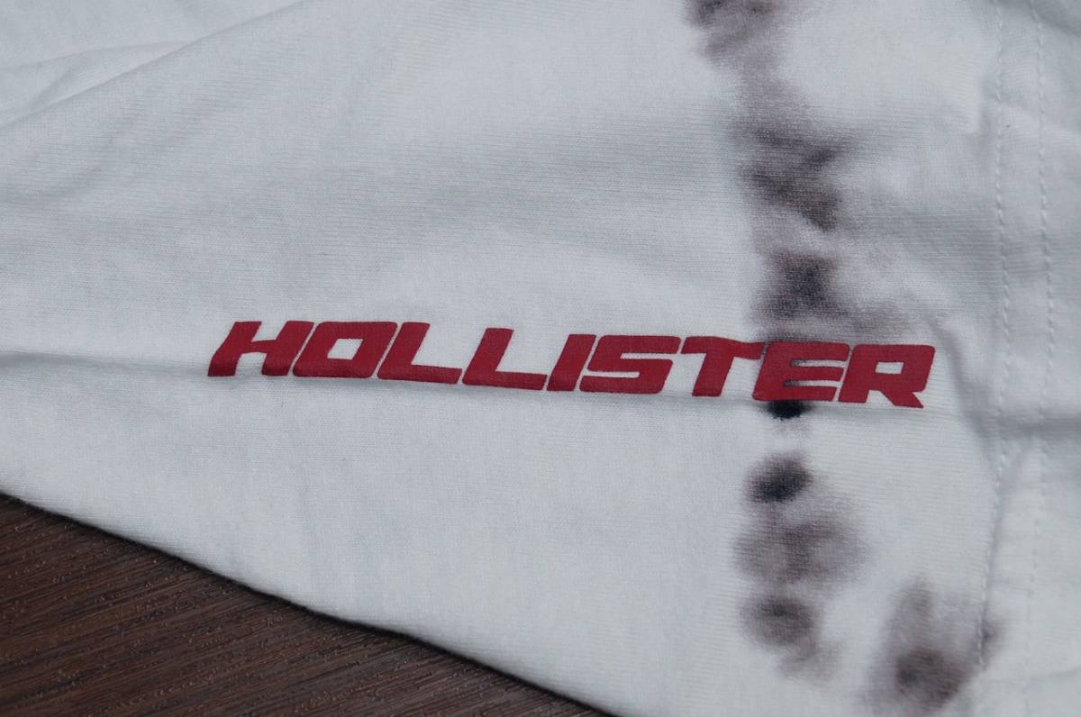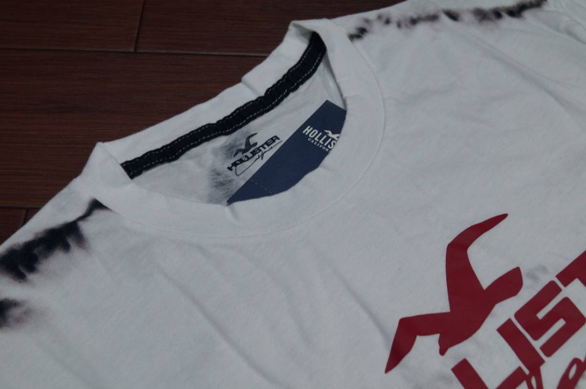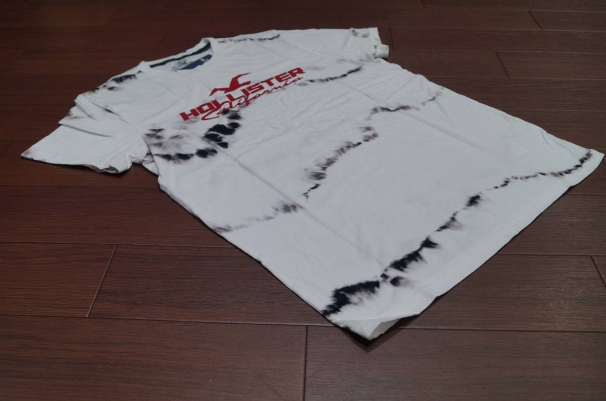Hollister むら染め ロゴプリント Tシャツ 半袖/L/ホワイト/白/ メンズ ホリスター アバクロ カットソー a&f