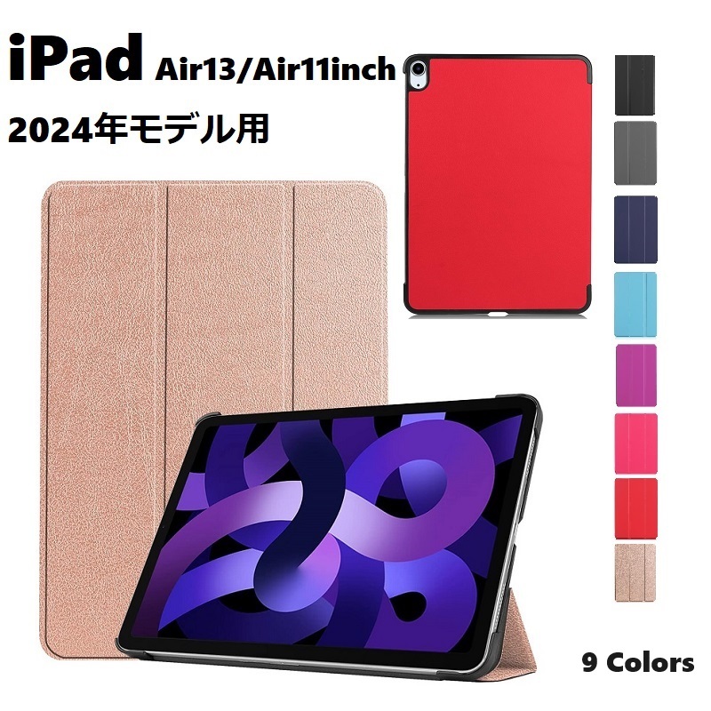 | iPad Air13inch 2024年モデル用 PUレザー 三つ折り スマート ケース スタンド オートスリープ機能 第2世代 アップルペン携帯可能 |