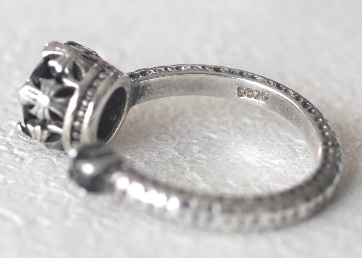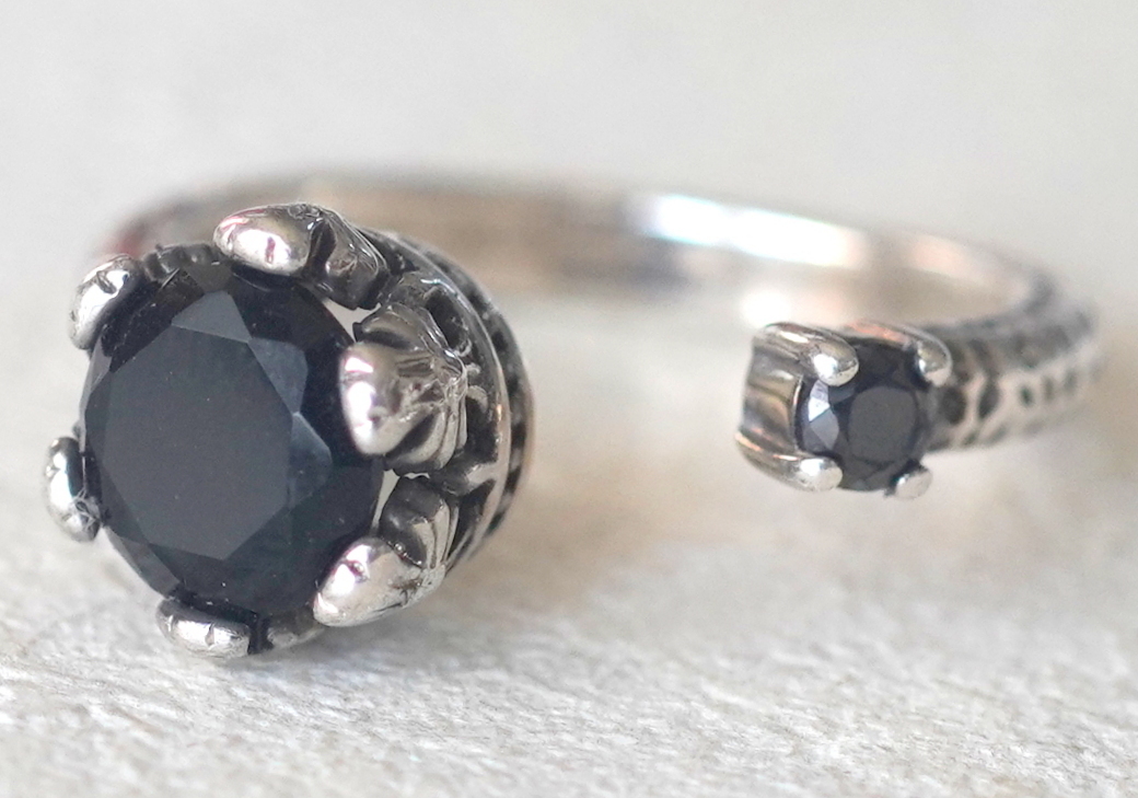 シルバー925製の王冠に黒い石付きリングです。