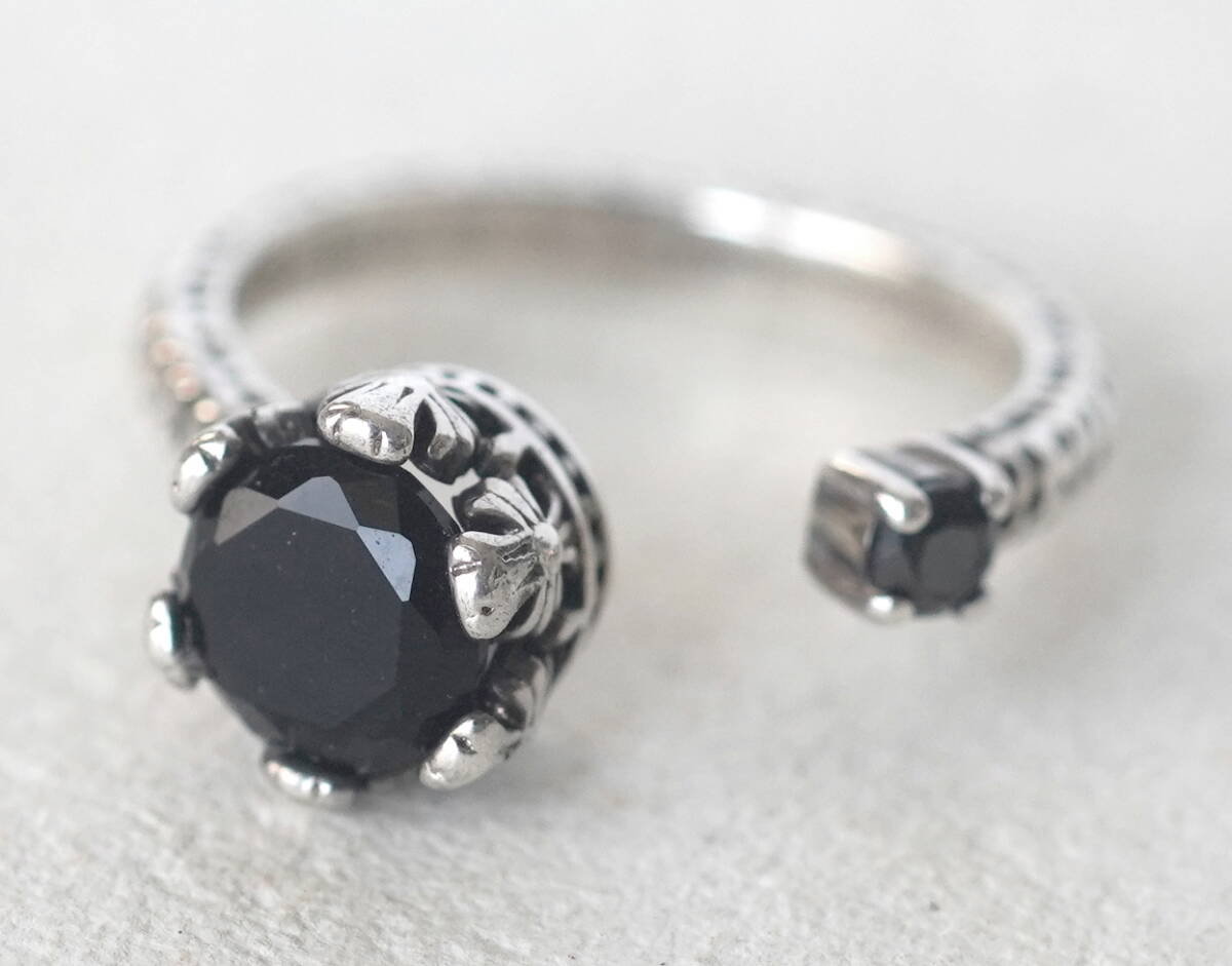 シルバー925製 王冠に黒い石付きリング クラウン ゴシック