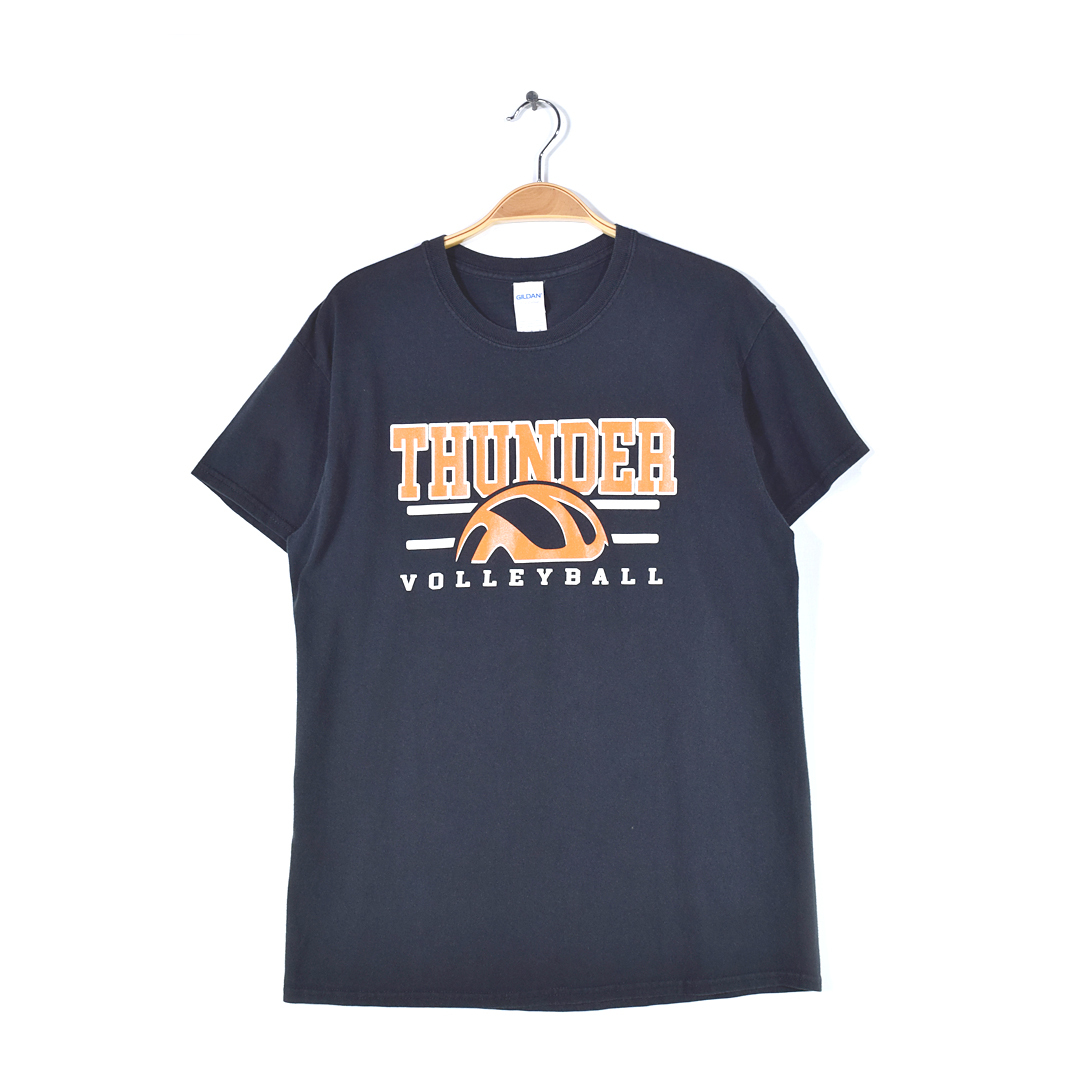 ギルダン Tシャツ カレッジ 背番号 THUNDER VOLLEYBALL ロゴプリント 黒 ブラック メンズM アメカジ 古着 @BZ0288