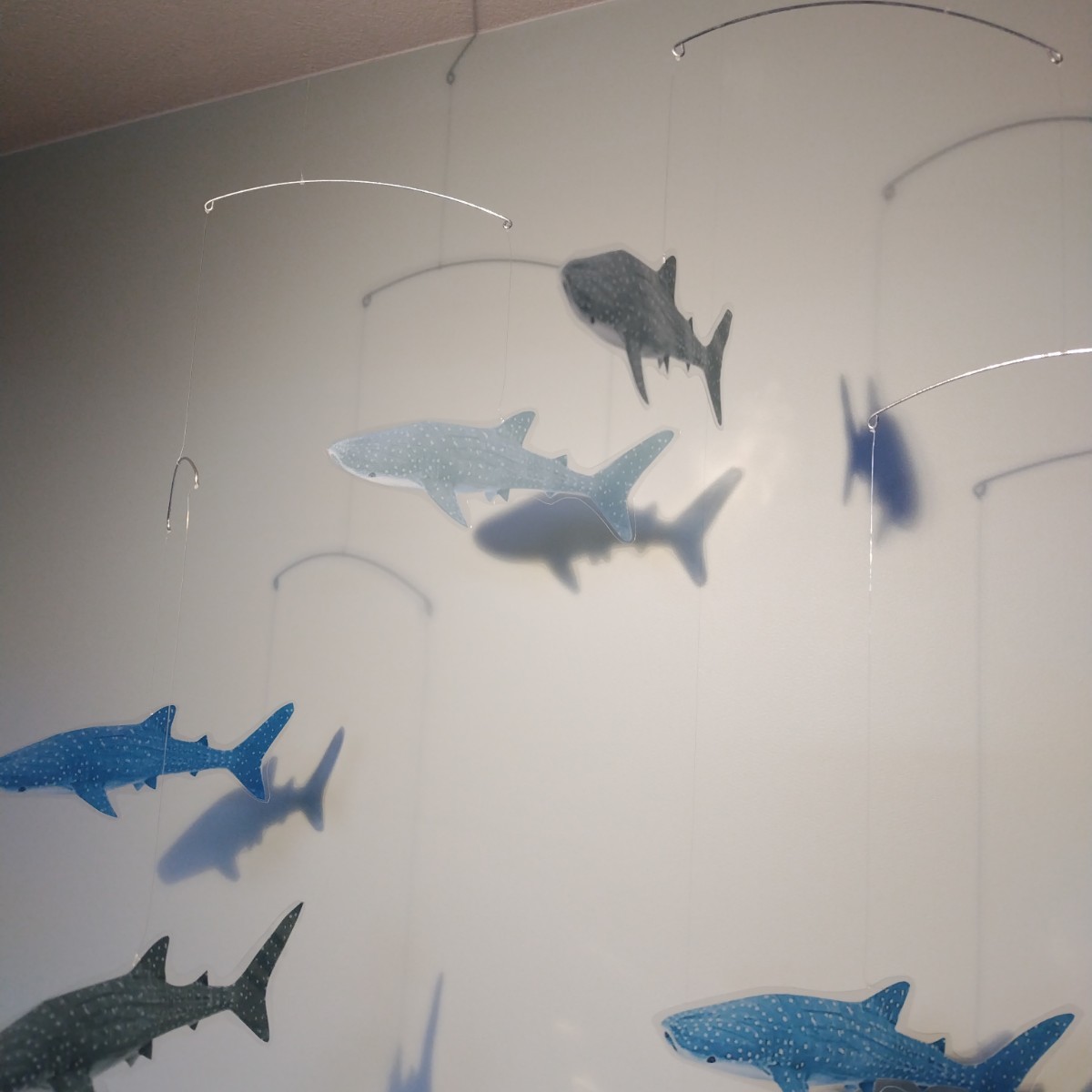 わずかな風で サメたちがゆらゆら揺れて癒されます♪まるで 泳いでるかのよう!涼しげ(*^^*)お部屋が 水族館 !?