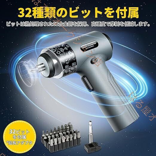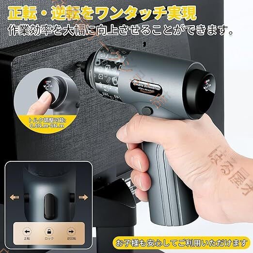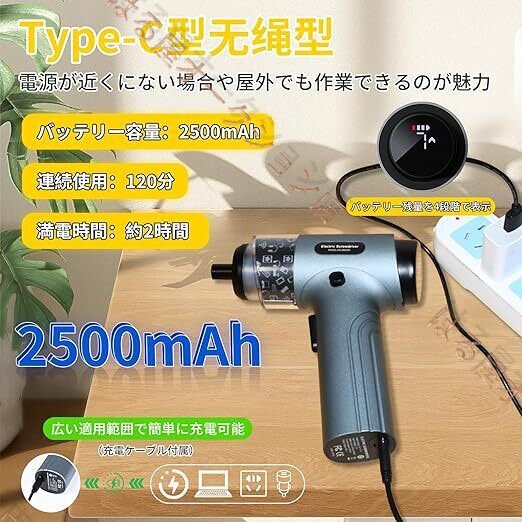 2500mAh大容量 Type-C充電式 電動ドライバー 電動ドリル 電動 トルク0.5N.m-6N.m調整可能 LEDライト 収納ケース付き