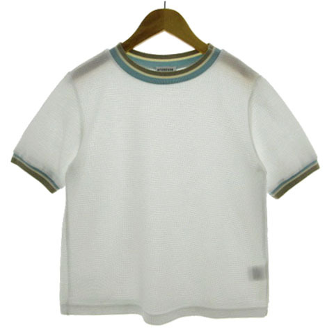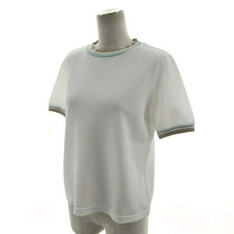 マックレガー マクレガー McGREGOR ニット カットソー 半袖 配色 ホワイト 白 ブラウン系 茶系 アイボリー 青緑 M レディース