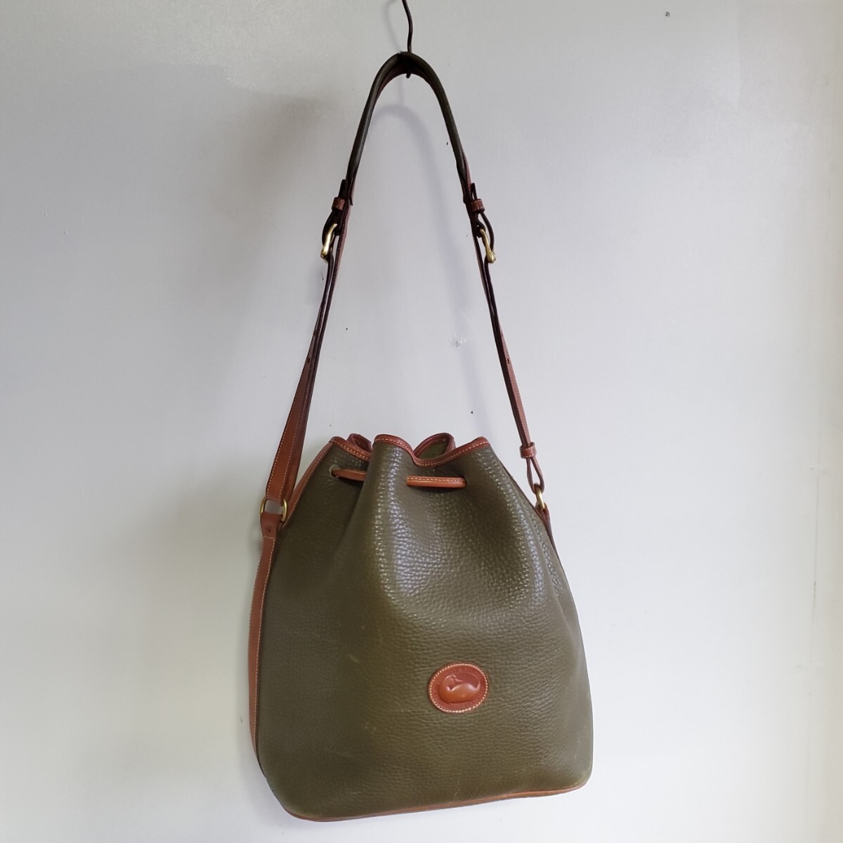 980◆ドゥーニーアンドバーク DOONEY&BOURKE 巾着型 ワンショルダーバッグ グリーン系 グレインレザー 中古 USED 古着 vintage