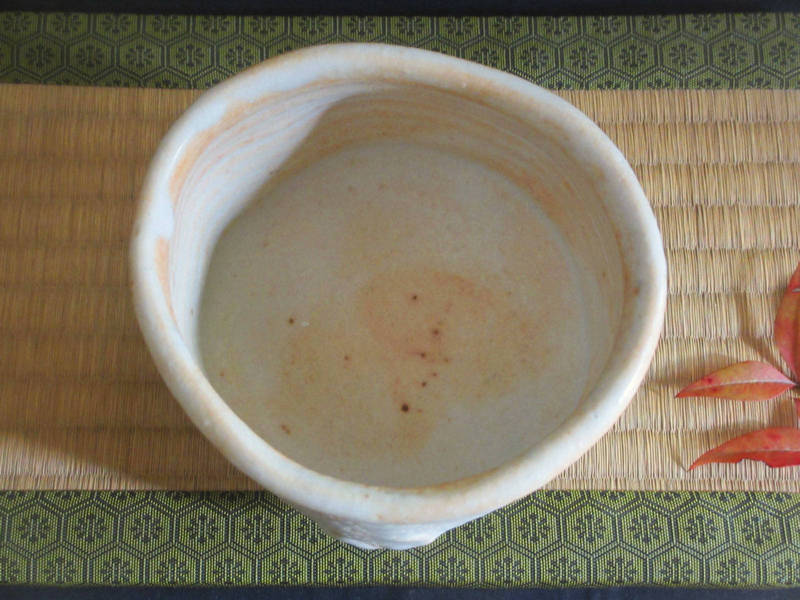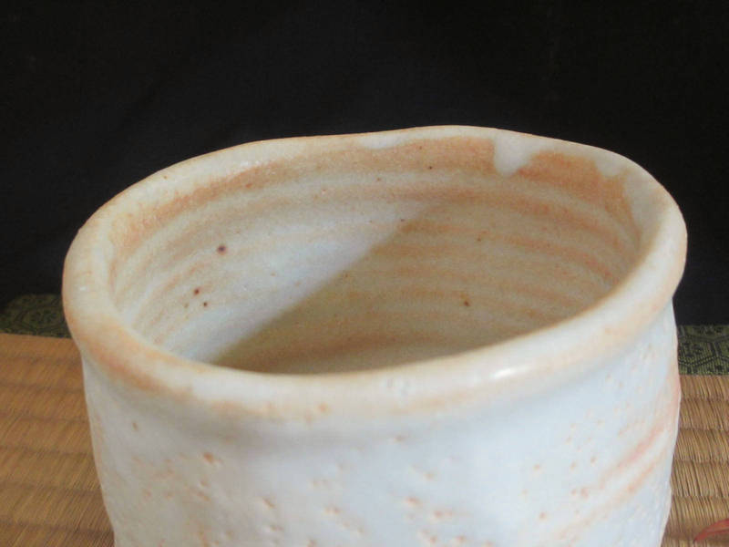 胴には削りを施し包み込むような優しい手触り。口縁は口当たり良く、広がっていますので滑りにくくなっています。施釉は下部までたっぷりと掛けられ、高台は土見せとなり低く、土は白っぽい色に焼き上り、指跡も見られます。