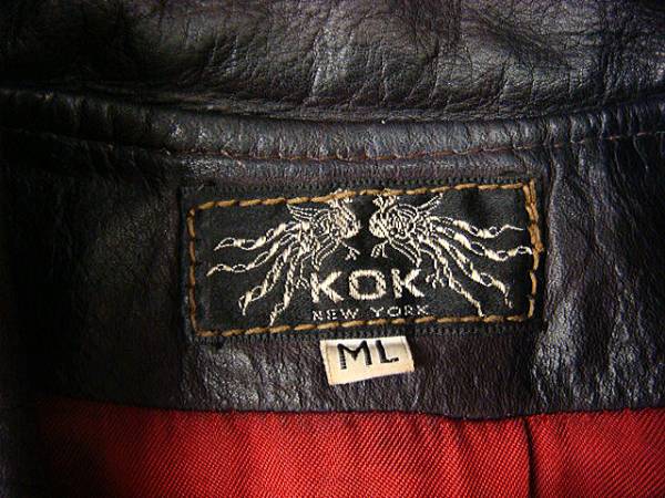 ビンテージ KOK コク ニューヨーク ブランド 70S レザー ジャケット ヒッピー 黒 茶 経年変化 アジ 雰囲気 革ジャン イーストウエスト世代