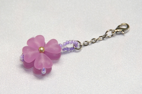 ♪櫻♪ポップビーズの四つ葉ストラップ♪007♪プレゼント~purple:幸運の四葉をビーズアクセサリーで。ファスナーチャーム,キーホルダーに