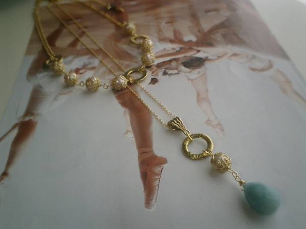 後ろボタンのワンピース・・シリーズです♪パール宣言・・キュートな淡水パールとアマゾナイトのネックレス2本セットです♪シックな座金やデザインリングでおめかししてアンティークモダンな表情です♪8ミリ位のポテトの淡水パールは繊細な座金やデザインリングを合わせました♪長さは全長66センチ位で調節自由です♪チョーカー風にされても素敵です♪20×15ミリのドロップカットのアマゾナイトは淡水パールやデザインリングを合わせて可憐な表情です♪長さは65センチ+アジャスター13センチで最長78センチ位です♪それぞれ単品でも出品しています♪ブレスレットも出品しています♪♪シンプルで飽きのこないいつまでも着けられるデザインを考えて作りました!ハンドメイドをご理解頂いてノークレーム、ノーリターンでお願いします