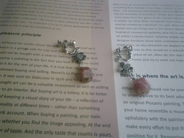 黄昏時に恋して・・シリーズです♪アンニュイなモーヴピンクのピンクトルマリンのイヤリングです♪ペア1組です♪ピンクミックストルマリンは11×12ミリ位のラフカットです♪お花のデザインチャームを合わせて甘すぎない大人のロマンチックしていています♪長さは全長4・5センチ位です♪ピアスにも変更出来ます♪お揃いのネックレスやブレスレットも出品しています。ハンドメイドをご理解頂いてノークレーム、ノーリターンでお願いします