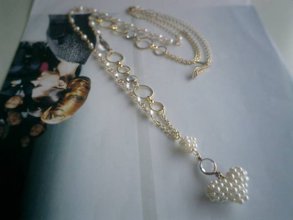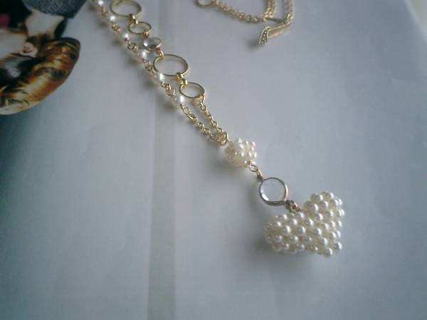 女の子テイスト・・シリーズです♪パール・コレクション・・淡水パールとハートのキュートなネックレスです♪5ミリ、6ミリのポテトの淡水パール、11ミリ位のパール玉、25ミリ×20ミリ位のパール・ハートにラウンドやマーキスのステンド・ビーズやデザインチェーンを合わせてさりげなくロマンチックしています♪♪長さは全長85センチ位で調節自由です♪トップは5・5センチ位です♪お揃いのブレスレットやピアスも出品しています♪シンプルで飽きのこないいつまでも着けられるデザインを考えて作りました!ハンドメイドをご理解頂いてノークレーム、ノーリターンでお願いします