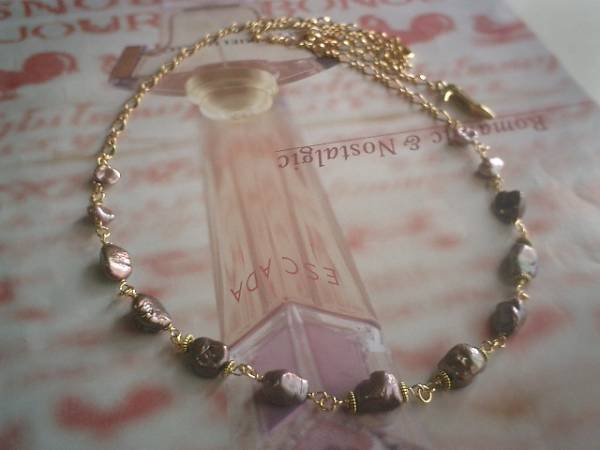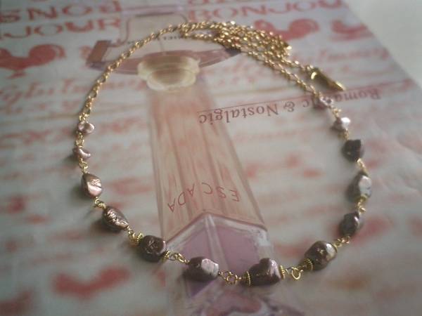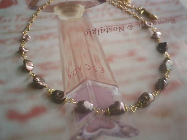 女の子テイスト・・シリーズです♪モーヴピンクに恋して・・キュートな芥子パールのネックレスです♪グレーやパープルがかったシックなモーヴピンクの芥子パールが大人のロマンチックしています♪芥子パールは8ミリから11ミリ位です♪クラシカルな座金でおめかししました♪長さは全長70センチ位で調節自由です♪チョーカー風にされても素敵です♪♪お揃いのブレスレットやピアスも出品しています♪シンプルで飽きのこないいつまでも着けられるデザインを考えて作りました!ハンドメイドをご理解頂いてノークレーム、ノーリターンでお願いします