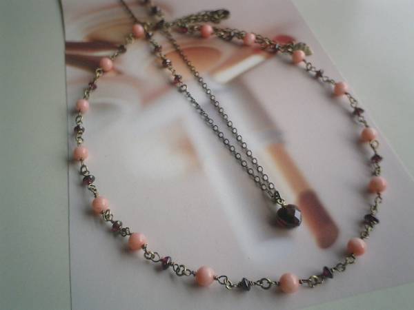 ロゼッタのお気に入り・・シリーズです♪やさしいピンク・ピンク珊瑚とガーネットのネックレス2本セットです♪シックなサーモンピンクの珊瑚と深い赤のガーネットが大人可愛いネックレスです♪6ミリの丸玉のピンク珊瑚はガーネットのボタンカットを合わせました♪長さは全長60センチ位で調節自由です♪繊細なチェーンにはボタンカットのガーネットを合わせてトップは9ミリのハートカットのガーネットです♪長さは80センチ+アジャスター10センチで最長90センチ位です♪それぞれ単品やブレスレットも出品しています♪♪シンプルで飽きのこないいつまでも着けられるデザインを考えて作りました!ハンドメイドをご理解頂いてノークレーム、ノーリターンでお願いします