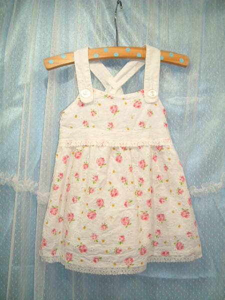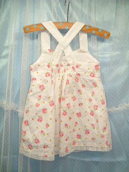 Ω 西松屋 Ω★80★レース■キャミワンピース■白地 薔薇柄