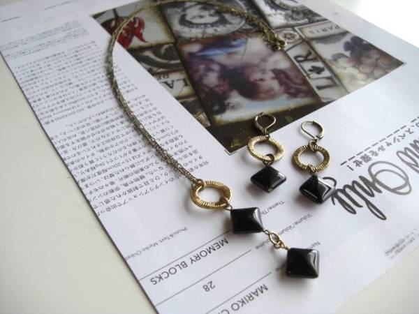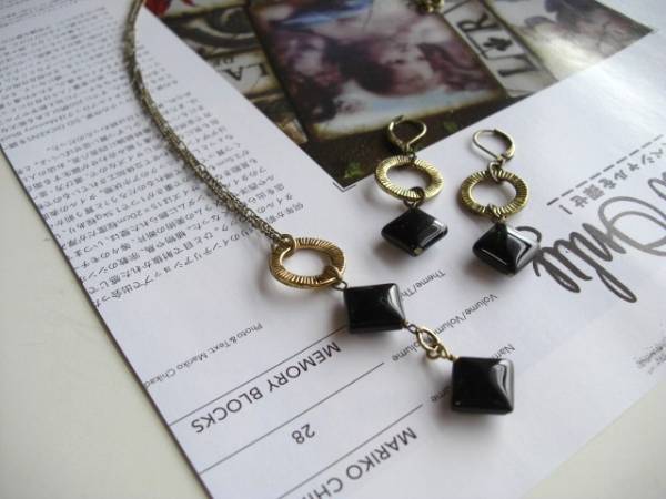モダン・ガール・・シリーズです♪オニキスレシピ・・シックなオニキスのネックレスとピアスです♪スクエアのオニキスにデザインリングを合わせてフレンチ・モダンな表情です♪オニキスは12ミリのスクエアです♪ネックレスの長さは64センチ+アジャスター6センチで最長70センチ位です♪トップは6・5センチ位です♪ピアスの長さは5・5センチ位です♪イヤリングにも変更出来ます♪それぞれ単品でも出品しています♪シンプルで飽きのこないいつまでも着けられるデザインを考えて作りました!ハンドメイドをご理解頂いてノークレーム、ノーリターンでお願いします