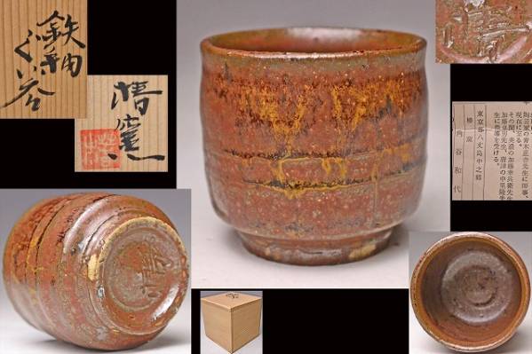 サイズは 60mmx高さ25mm です。 東京都 八丈島 で作陶されている 角谷和代 氏 の作品 です。 中里隆 氏、小山冨士夫 氏と 作陶もされていた 経験もある 青木正吉 氏に師事しています。 鉄釉ですが、 柿釉風の 作品 となっています。写真を参考の上入札ください。宅配便60サイズにて発送します。他にも多数出品してます。同梱対応いたします。1