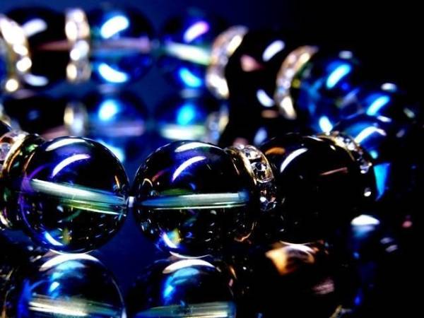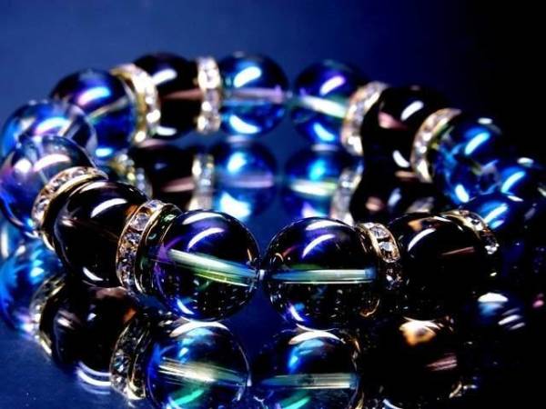 激シブ煙水晶とブルーオーラの組合せでこの見事な数珠!