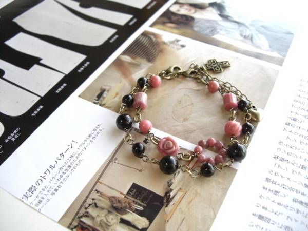 物語の始まり・・シリーズです♪イーニドの夢・・シックなオニキスとロードナイトのブレスレット2本セットです♪漆黒のオニキスにダークピンクのロードナイトを合わせてロマンチックな表情です♪ロードナイトのブレスレットは4ミリから12ミリ位までの丸玉や薔薇やSラインやドラムなどデザイン違いのロードナイトを集めました♪長さは全長23センチ位で調節自由です♪6ミリ、8ミリの丸玉のオニキスはシンプルに繋いで合わせやすいデザインです♪長さは全長23センチ位で調節自由です♪それぞれ単品やネックレスも出品しています♪シンプルで長く着けていただけるデザインを考えて作りました♪♪ハンドメイドをご理解頂いてノークレーム、ノーリターンでお願いします。