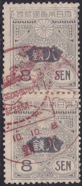田沢旧大正毛紙8銭 縦連(ヒンジ再接)