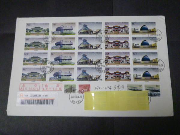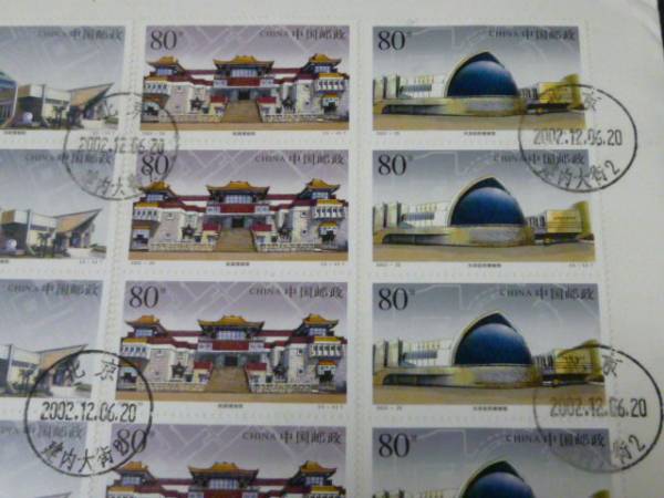 新中国切手C12 実逓カバー 2002年 25T 博物館建設 4枚連刷・他貼