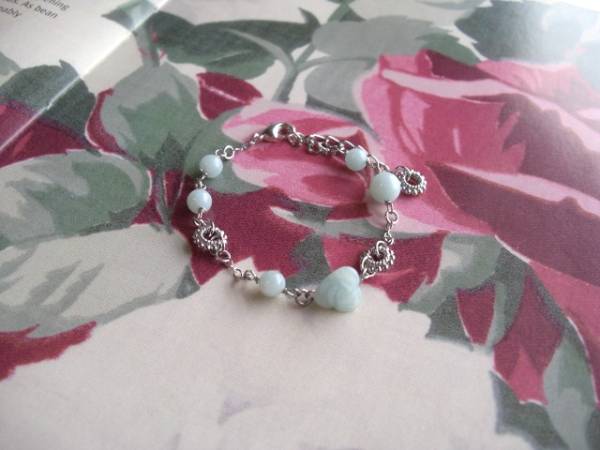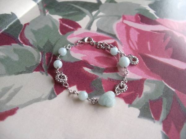 恋する人・・シリーズです♪水色の妖精・・アマゾナイトのブレスレットです♪シックでさりげなく華やかな雰囲気でまとめました♪薔薇や丸玉のブルーグレーのアマゾナイトを合わせて可憐な表情です♪6ミリ、8ミリの丸玉に11ミリ位の薔薇を合わせました♪長さは16センチ+アジャスター6センチで最長22センチ位です♪お揃いのブレスレットやネックレスやピアスも出品しています♪シンプルで飽きのこないいつまでも着けられるデザインを考えて作りました!ハンドメイドをご理解頂いてノークレーム、ノーリターンでお願いします