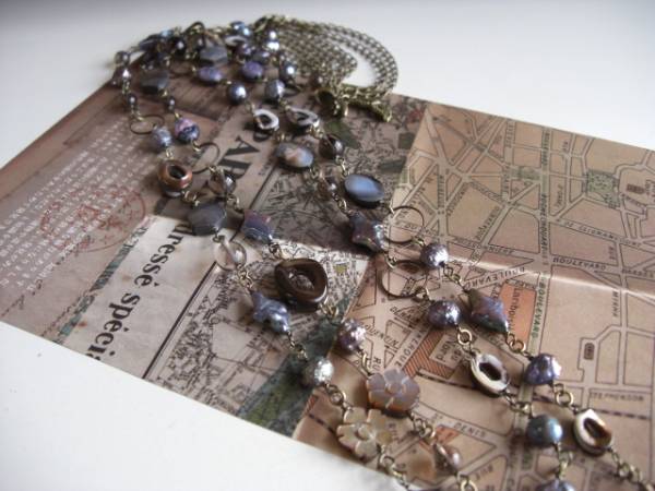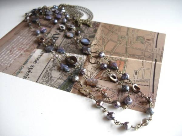 恋する人・・シリーズです♪シルクロードの旅・・シックなグレー色の淡水パールのネックレス2本セットです♪同じデザインの長さ違いです♪単品でも重ねても楽しんでいただけます♪6ミリから14ミリ位までのポテトやバロック、クロスなどのデザイン違い、大きさ違いの淡水パールにリングやお花やオーバルカットの黒蝶貝やチェコのデザインビーズやスモーキークォーツを合わせてオリエンタルな表情です♪長さは長い方が全長99センチ位です♪短い方が全長88センチ位です♪それぞれ単品やブレスレットも出品しています♪シンプルで飽きのこないいつまでも着けられるデザインを考えて作りました!ハンドメイドをご理解頂いてノークレーム、ノーリターンでお願いします