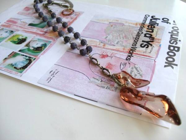 一粒の幸せ・・シリーズです♪魔法の靴に恋して・・シックなダークパープルのラバーストーンのネックレスです♪琥珀色の樹脂の靴のチャームやデザインチェーンを合わせてニューヨークモダンしています♪ラバーストーンは8ミリ位、靴のチャームは20×32ミリと35×65ミリ位です♪長さは全長75センチ位で調節自由です♪トップは14センチ位です♪♪お揃いのブレスレットも出品しています♪♪シンプルで飽きのこないいつまでも着けられるデザインを考えて作りました!ハンドメイドをご理解頂いてノークレーム、ノーリターンでお願いします