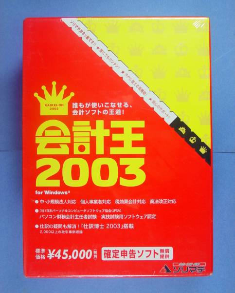 【191】4933391300014 ソリマチ 会計王2003 新品 仕訳博士 会計ソフト 青色申告 決算書 財務 帳票 帳簿 Windows95 98 Me 2000 XP NT4.0対応