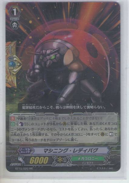 VG-BT15 無限転生 RR マシニング・レディバグ1枚です。カードの状態はパック開封後スリーブに入れて保管していました、未使用ですが初期傷等はご了承下さい。