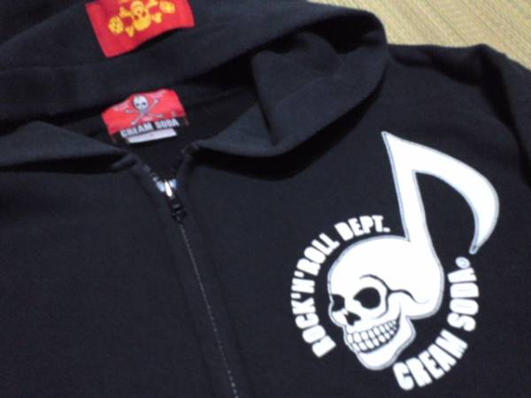 クリームソーダブラックキャッツスゥエットパーカー サイズS 着丈約56cm 肩幅約55cm 脇幅約56cm 計測に個人差がありますので御了承下さい。古着ですので色落ち 使用感あります