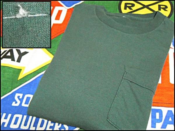 ☆シンプルで使い勝手の良い1枚☆USA製アメリカ製ビンテージコットンポリポケットTシャツ緑色グリーン80's70's90's80年代70年代90年代