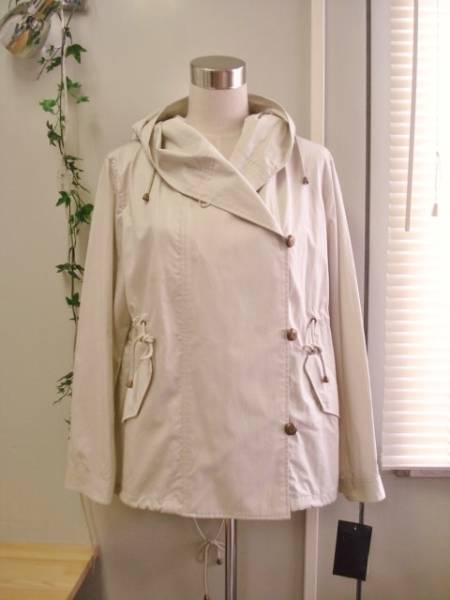 未使用◆shallishフード付スプリング綿コート ライトベージュM/3-w119