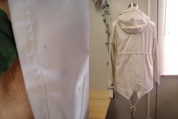 右袖口辺りに黒い薄汚れがございます。その他、未使用ですが自宅保管品になります。