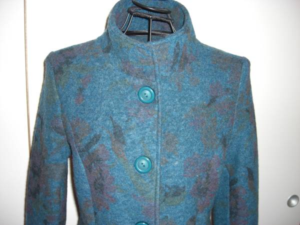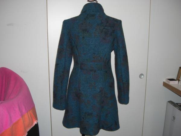 ゆうパック送料込!!国内セレクトショップにて購入。イタリア製です!(こちらのお色違いも出品しています)とっても軽くて着やすい、フエルトジャージー素材のフラワープリントが素敵!スタンドカラーで、女性らしいプリンセス風の襟ライン♪こちらは南イタリアで、ジャージーやカットソー製品のアウターを手掛けるファクトリー「VEZZO S.R.L.」社のコートです。シックなフラワープリントを施した一重仕立てで、後ろにバックベルトの付いたエレガントでクラシカルなデザインが魅力的!本当に軽く、シワにもなりにくい素材ですので、年末年始のお出かけにまさにぴったり!!オリジナリティ溢れる一着!!お色はブルーで、柄部分はボルドー×ブラウン×カーキ×黒等が入っています。イタリア製ですので、形の素晴らしさは言うまでもありません。インにパーカーを着てもカッコよくきまります!サイズは希少、イタリアサイズ「S」。一番早く売りきれるサイズです。通常イタリアサイズ、36~38サイズの方向き。裏地は付いていませんがかなり暖かいです!探しに探して手に入れたのですが、似たものだらけになりましたのでお探しの方に!素材はヴァージンウール70%、ポリエステル30%で厚地ですが軽く、大変温かいです!価格は45360円。シワになりにくいウールで、旅行のために購入しましたが、結局試着のみです(タグは破棄してありません)。あくまで個人保管ですので、ご理解いただける方に。購入時、各サイズ1枚のみの入荷で、Sサイズを購入できたのは当方のみでした。7号~細身9号の方に。あくまで素人採寸ですが、着丈約74~75センチ、肩幅約38~39センチ、バスト約88~90センチ、袖約57~58センチ。着丈も身長を選ばない長さです。手に入れ られなかった 方にぜひ。最高に素敵ですよ~。ノークレーム&ノーキャンセルで!よろしくお願いします!!(他にもエルメス、セリーヌ、デイースクエアード、ボッテガヴェネタ、サンローラン、アニオナ、コーチ、クロエ等多数出品中)