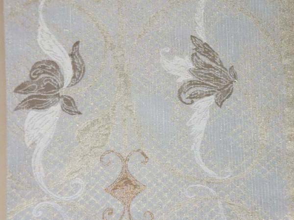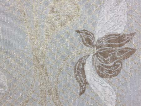 洛風林からの軽い軽い透かし織のブル-グレ-地に茶の文様袋帯