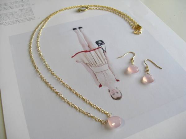 クレアの幸せ・・シリーズです♪繊細なピンク・・やさしいピンクカルセドニーのネックレスとピアスの2点セットです♪ピアスはイヤリングにも変更出来ます♪コロンと可愛いマロンシェイプのピンクカルセドニーに華奢なチェーンをあわせて可憐な表情です♪ピンクカルセドニーは12ミリ位です♪ネックレスの長さは70センチ+アジャスター13センチで最長83センチ位です♪ピアスの長さは全長3・5センチ位です♪お揃いのブレスレットも出品しています♪シンプルで飽きのこないいつまでも着けられるデザインを考えて作りました!ハンドメイドをご理解頂いてノークレーム、ノーリターンでお願いします