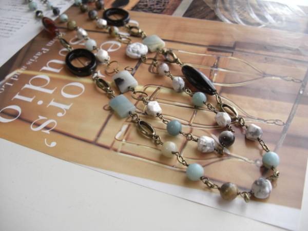 6月の花嫁・・シリーズです♪アマゾナイトと薔薇と・・シックな水色のアマゾナイトのネックレス2点セットです♪丸玉やスクエアなどデザイン違いのアマゾナイトにオニキスやハウライトやデザインチェーンを合わせてアンティークな表情です♪長い方のネックレスは8ミリの丸玉、14ミリのスクエアのアマゾナイトに28ミリ、30ミリのナツメやリングのオニキス、9ミリ位のラフカットのハウライト、デザインチェーンを合わせました♪長さは全長96センチ位で調節自由です♪短い方のネックレスは6ミリ、8ミリの丸玉、14ミリのスクエアのアマゾナイトにハウライトのラフカットや16ミリの薔薇を合わせてロマンチックな表情です♪長さは77センチ位で調節自由です♪それぞれ単品やブレスレットも出品しています♪ハンドメイドをご理解いただいてノークレーム・ノーリターンでお願いします♪