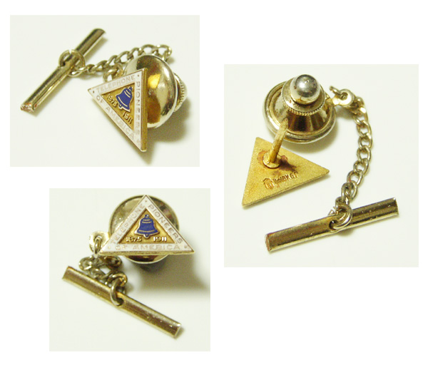 ビンテージ タイタックです。状態は、古い物ですので、擦れや汚れなどありますが、ビンテージの雰囲気ある物です。アメリカで購入しました。デザインや作りがとても可愛いです。TELEPHONE PIONEERS OF AMERICA 1875-1911とあります。古い物ですので、それなりの状態ですが、年代物の風格とレトロ感ある物です。縦9mm、横幅1.3cmです。ビンテージ物とご理解頂いて、ノークレーム、ノーリターンでお願いします。