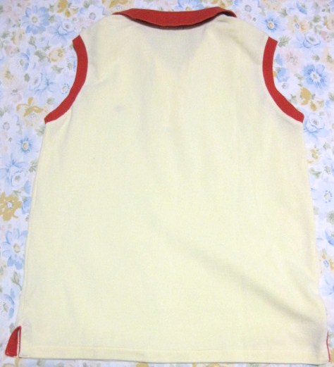 色はオレンジがかった黄色で衿は赤です。