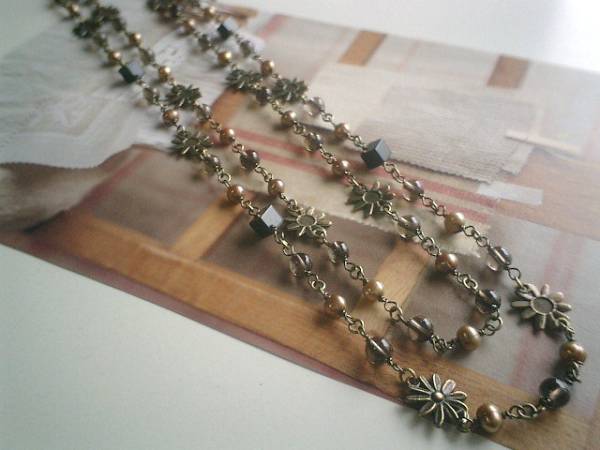 好きなものを+して・・シリーズです♪大人の遊び心・・シックなオニキスとスモーキークォーツと淡水パールのネックレス2本セットです♪色をおさえて遊びを入れたデザインのネックレスです♪5ミリから8ミリ位までの丸玉、キューブのオニキス、スモーキークォーツ、淡水パールを合わせました♪真ん中の画像の長い方は全長102センチ位です♪2連にされても素敵です♪右側の短い方は92センチ位です♪ブレスにされても素敵です♪それぞれ単品でも出品しています♪お揃いのブレスレットやピアスも出品しています♪♪シンプルで長く着けていただけるデザインを考えて作りました♪♪ハンドメイドをご理解頂いてノークレーム、ノーリターンでお願いします。