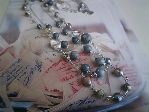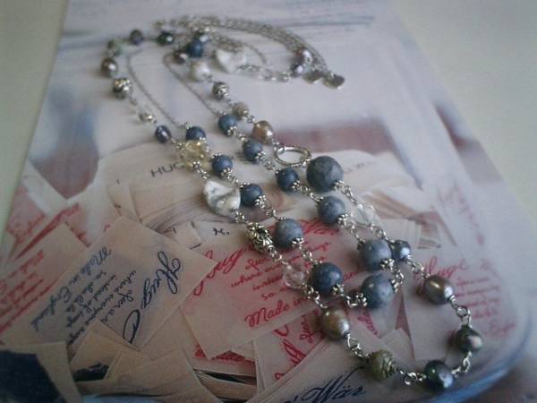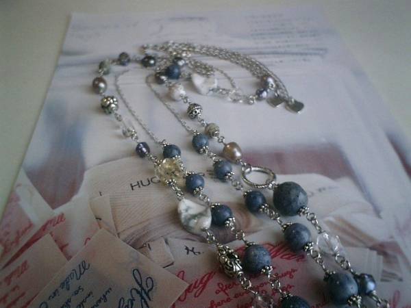 ジャンヌのコレクション・・シリーズです♪ブルー・デニム・・シックなブルー珊瑚のネックレス2本セットです♪インディゴ・ブルーのブルー珊瑚にレモン水晶や淡水パールや水晶やハウライトや薔薇のメタルチャームやアンティークビーズを合わせて可憐な表情です♪♪2本を重ねてネックレスに1本をブレスレットにと色々な組み合わせで楽しんでいただけます♪ブルー珊瑚は6ミリ、8ミリの丸玉、14ミリのラウンドカットです♪レモン水晶は15ミリのラフカット、水晶は8ミリ、6ミリのラウンドカット、淡水パールはバロックやライスです♪長さは全長92センチ位で調節自由です♪2連にされても素敵です♪短い方のネックレスは6ミリ、8ミリの丸玉のブルー珊瑚です♪座金でおめかししてやさしい表情です♪長さは62センチ+アジャスター13センチで最長75センチくらいです♪単品でも出品しています♪シンプルで飽きのこないいつまでも着けられるデザインを考えて作りました!ハンドメイドをご理解頂いてノークレーム、ノーリターンでお願いします