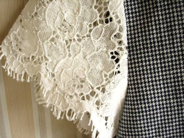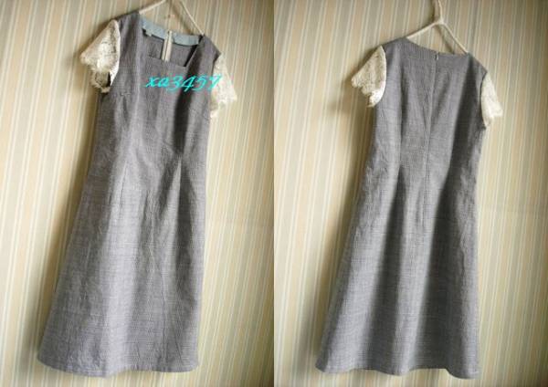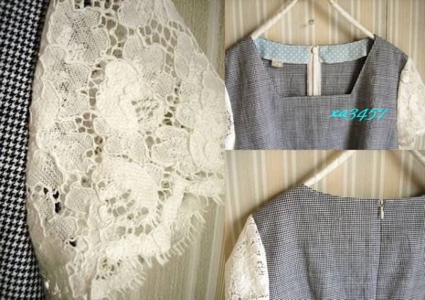 身頃: 白×紺のミニ千鳥チェック 綿100% しっかりめの中厚地ですが、ごわつきのないソフトな風合いです。 透ける心配はございません。 袖: 高級コットン花柄レース スカラップ オフ白 前後ろにダーツをとってボディーラインに沿うようにしました。 背中心にコンシールファスナー開き ◆サイズ (平置き:約cm) B幅 45 W幅 39.5 H幅 50 着丈 96 肩幅 37 袖丈 14.5 袖口幅 17 Xラインシルエットのシンプルなワンピースですが、 存在感のある高級レースを少し使うことでぐぐっとエレガントになりました。 きちんと感のある1着をお求めの方に♪ 気に入って頂けたらうれしいです。 | ||||