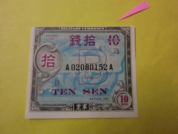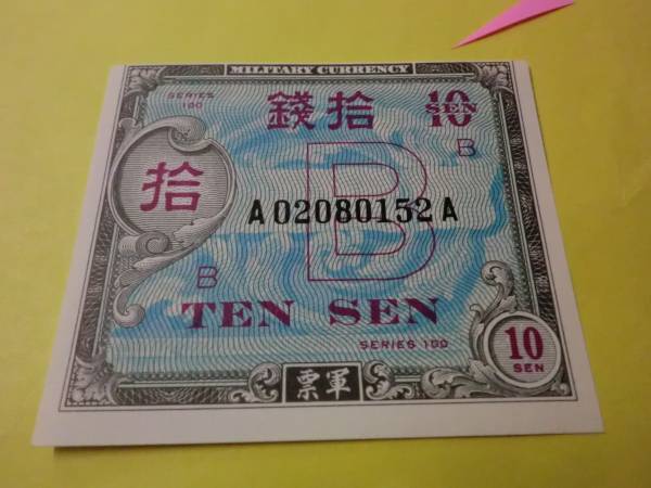 在日米軍軍票 B10銭券の未使用で上部の裁断ズレが有ります。