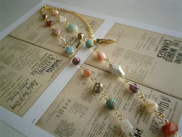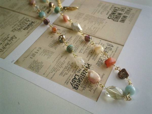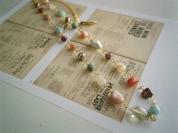 コゼットの裁縫箱・・シリーズです♪やさしいピンク・・繊細で神秘的な石を集めてシックなネックレスです♪6ミリから18ミリ位までのランダムカットやラフカットや丸玉やドロップカットなどのピンクオパールやレモン水晶、ボツワナアゲートやルチルクォーツ、カーネリアン、アマゾナイト、ムーンストーンや芥子パール、水晶、チェコビーズなど透明感のある石を合わせてさりげなく華やかです♪長さは全長65センチ位で調節自由です♪お揃いのブレスレットも出品しています♪シンプルで飽きのこないいつまでも着けられるデザインを考えて作りました!ハンドメイドをご理解頂いてノークレーム、ノーリターンでお願いします