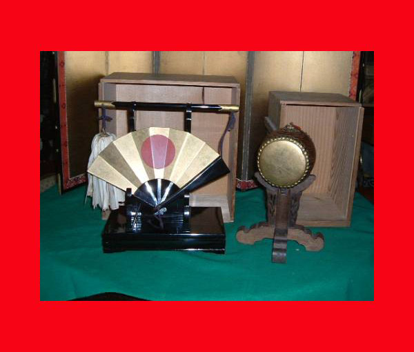 「丸平軍扇、太皷N84」 丸平、橋本幸三郎の作品です。 軍扇サイズ高さ25cm巾29cm 屏風は撮影用で付属いたしません。 |