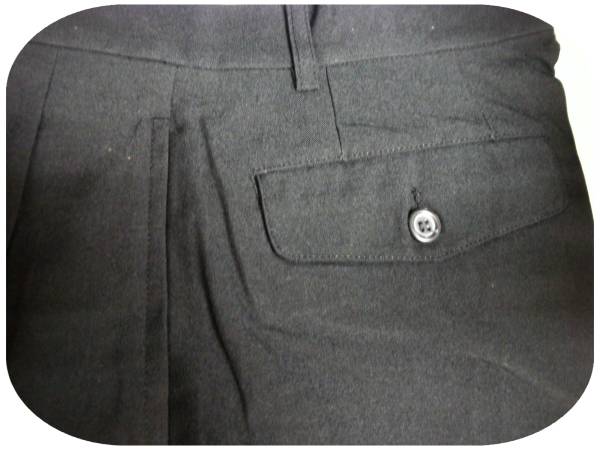 レアなルーズフィットワイドパンツです。ツータック 縦ポケ フラップ付バックポケット そして 極太ワイドシルエットデザイン の 超個性派薄地パンツです。生地は 画像では グレーぽくなってますが ブラック(黒色) です。素材は ポリエステル 65 %  レーヨン 35 % の 薄地で ウールぽい生地です。サイズ(平置実測採寸)は ウエスト 73cm(表示 73cm S) ワタリ幅 33,5cm 腿幅(股下 10cmの所) 32cm 裾幅 25cm 前股上 30cm 股下(フリー状態) 87cm です。 勿論 新品ですので、お好きな長さで 裾上げ修理し 着用可能です。 そして、御希望により 裾上げ修理等も 実費にて承ります。 尚 毎週木曜日は業務定休日で御座います。ご連絡御発送とも休業日明けにずれ込む事御了承下さい。 以上宜しくお願い申し上げます。そして、ランダムサンプリングした当商品を 期間限定にて 値下げ 安値スタートとなります。この期間は チャンスです!!