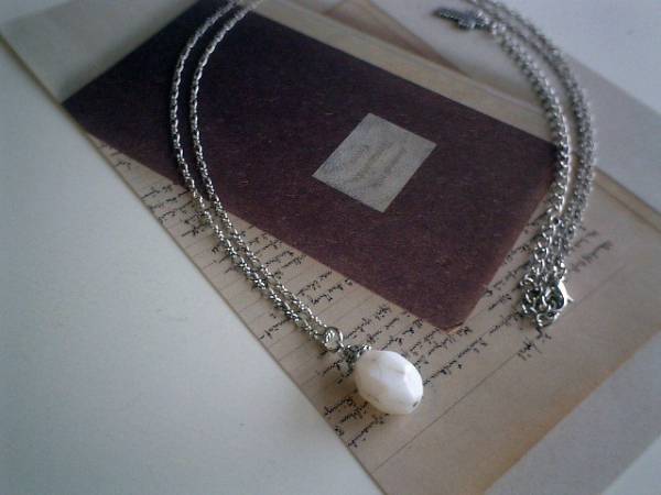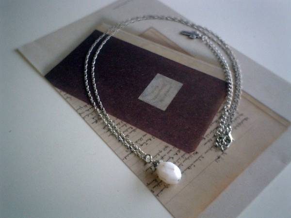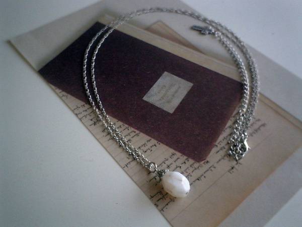 ロマンチックを紡いで・・シリーズです♪純白のブーケ・・清楚なホワイトオパールのネックレスです♪15×10ミリ位のラフカットのオパールはシックな座金でおめかししました♪長さは74センチ+アジャスター14センチで最長88センチ位です♪お揃いのネックレスやブレスレットも出品しています♪シンプルで飽きのこないいつまでも着けられるデザインを考えて作りました!ハンドメイドをご理解頂いてノークレーム、ノーリターンでお願いします