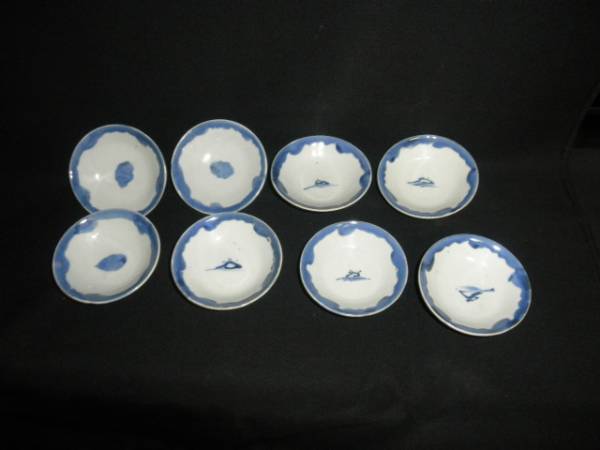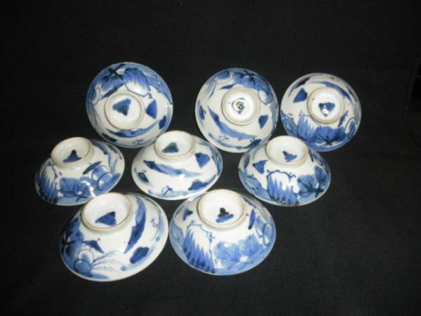 @@古伊万里 小茶碗の蓋のみ 8枚 染付 山水画 めずらしや