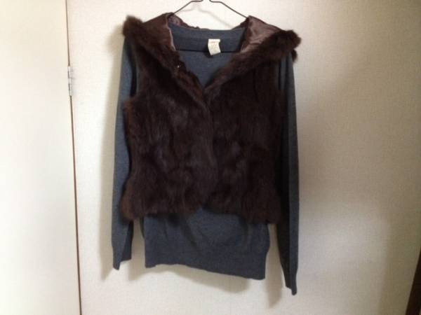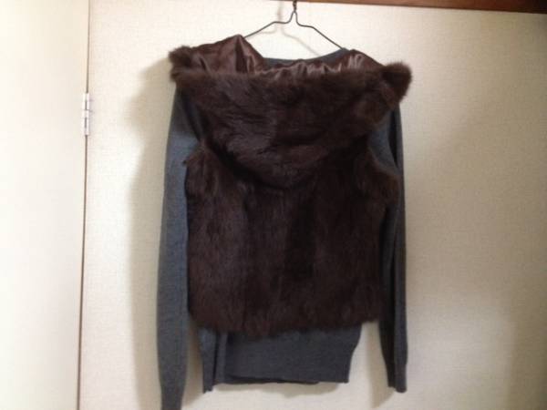 型がわかりやすいように、中にニットを用いましたが、お送りするのは茶色ジャケットだけですので、ご注意ください。